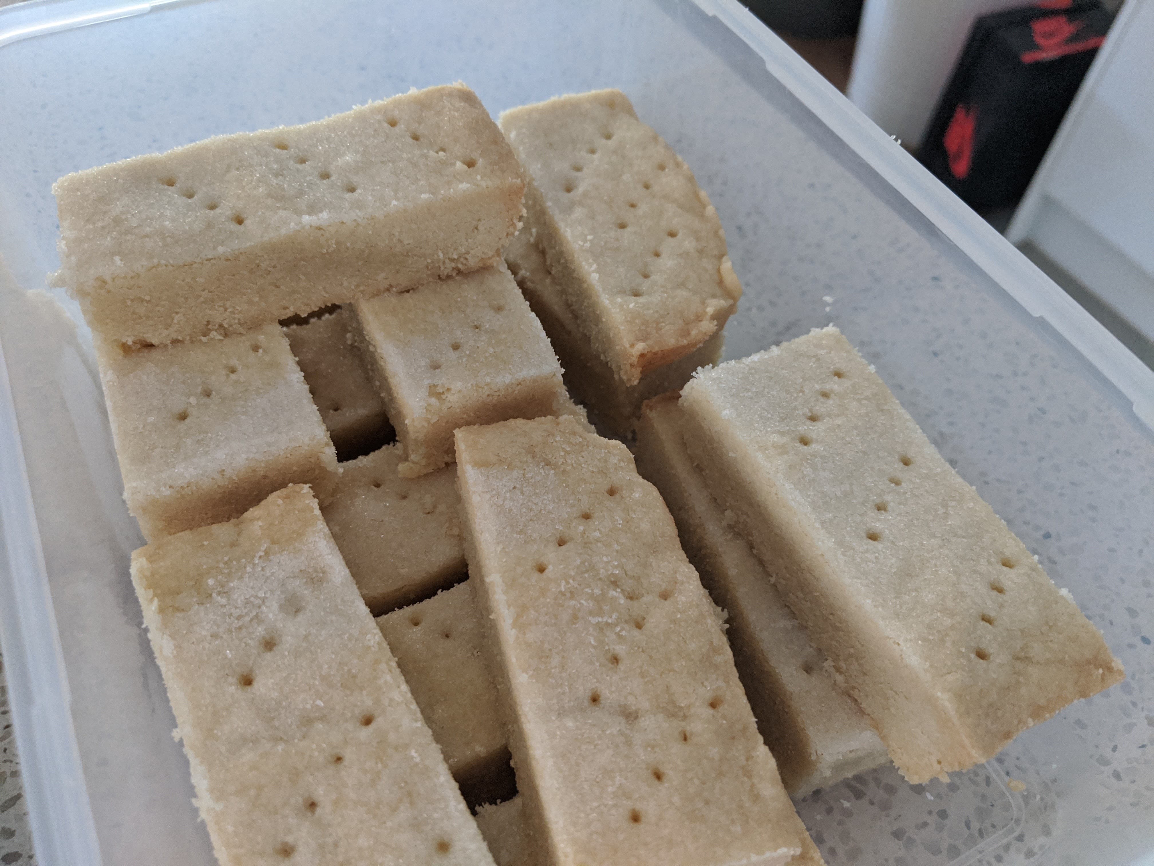Tip into prepared tin and press out to an even layer. Sprinkle with extra sugar. Use a sharp knife to score the dough in half lengthways, and then crossways into 16 fingers. Prick lightly with a fork.