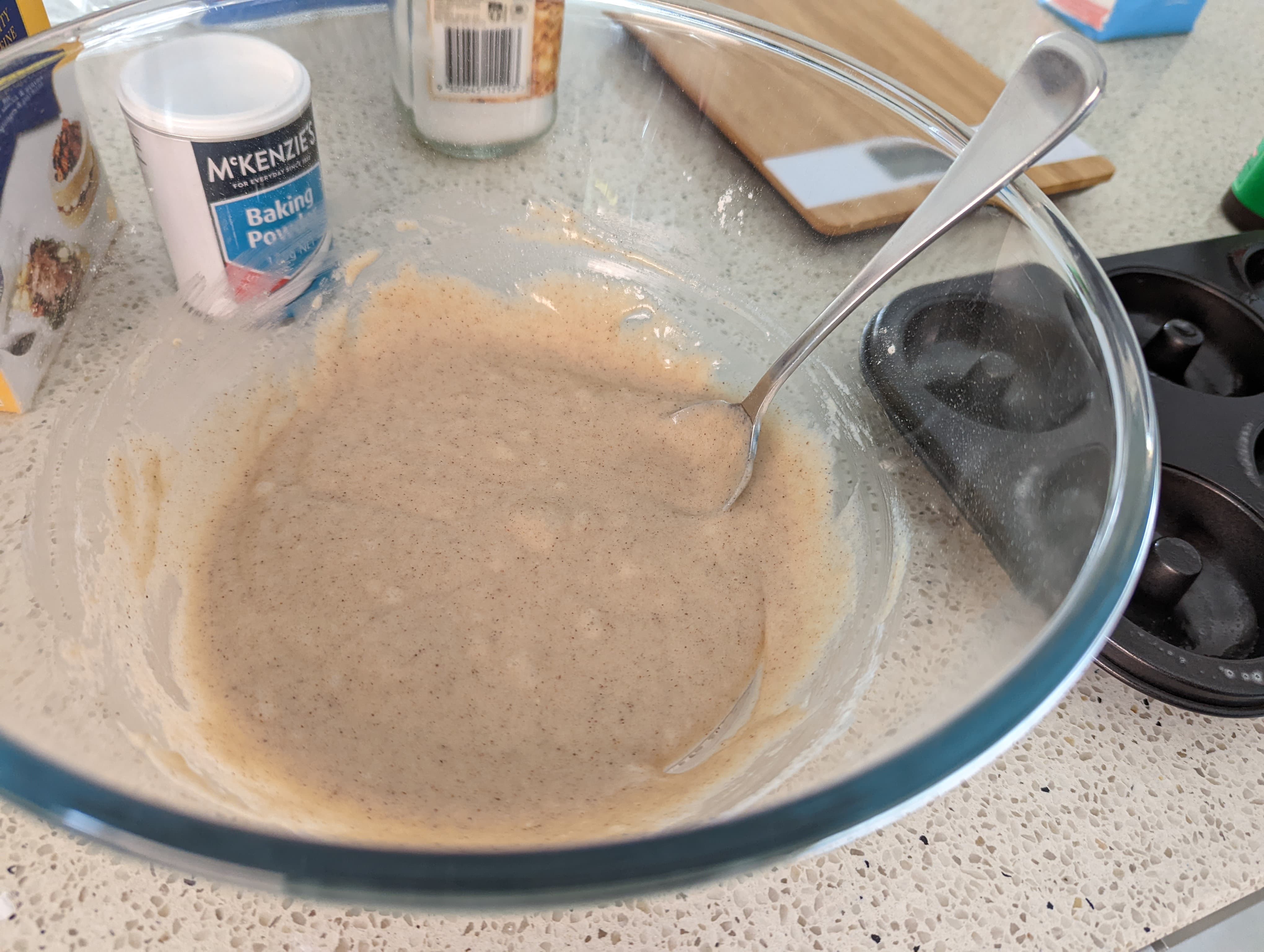 - Preheat the oven to 180 C (or 160 C fan-forced). Spray a donut pan with non-stick spray.